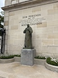 駅東側にあるシャンパーニュ通り。こちらの地下のカーヴが世界遺産。通り入り口にはやはりシャンパンを看板にしたレストランがあり、その先はワイナリーが続く。もっと派手なのかなと思っていたら、けっこう静かで抜けのいい感じ。で、さっそく見えてくるのがモエシャンドン。入ってすぐにドンペリニヨンの銅像。シャンパンの代名詞って感じ。
