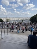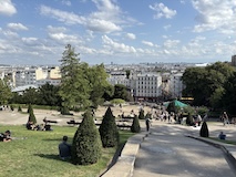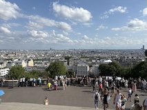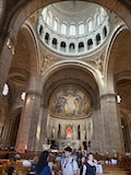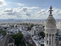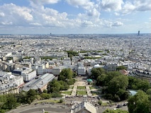 前回行けなかったモンマルトルへ。東駅からメトロで数駅。そこからめっちゃ坂登り階段登り20分でサクレクール寺院に到着。まだドーム展望台へ登れるということで急いで300段ほど登る。と登りまくり。ランスにいる間雨降りそうな天気やったけど、めっちゃ晴れてきて、360度パリと北側を一望できる。さすが丘の上の教会。高い建物が少ないのでエッフェル塔にモンパルナスタワーにとすごくわかりやすい。ビル群までは結構離れていて景観守られてるなって感じ。で、あらためて教会内部に入る。パリはゴシックが多い中、ここはビザンチン様式の3つのドーム。ドーム内側のモザイク画は世界最大級なのだそう。