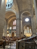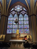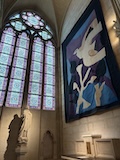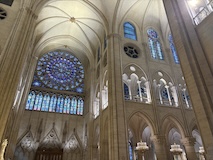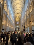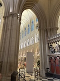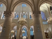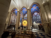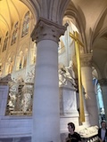 内部がとにかく柔らかく明るい調光がされている。ステンドグラスも磨き直し、全体的に埃も落とされているので、とにかく綺麗。タペストリーに現代アート的なものが入っていたり、ただ、修復したのではなく、ちゃんとアップデートされている感じが良い。ミサではないのかもしれないがイベント中だったみたいで、オルガンと歌が鳴り響いていた。とにかく、ノートルダムがここにあるということが大事なんやなというのを存分に感じられた。