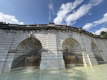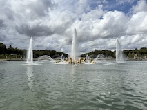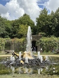 予約なしに急に来て入れるようなところではないのはわかっていて、庭園の方へ行く。とにかく広いし、噴水に緑にまあ綺麗で気持ちいい。26年前来た時にオープンテラスでピザを食べたのを思い出したのやけど、お店見つからず、ちょっと違うところでサーモンのピザいただく。などなどでなんやかんや2時間ほど楽しめた。
