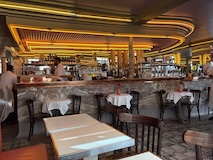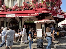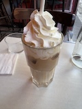 で丘を降りてたところにある、映画アメリの舞台だったカフェ、カフェ・デ・ドゥ・ムーランへ。メニューややこしいので、おすすめセット注文。ビーフシチューにコンソメスープにとお高いけどめっちゃうまい。そしてアメリでmおなじみクレームブリュレ。バキバキ叩き割っていただく。アイスコーヒー頼む。が油断してそのままアイスコーヒー頼んだので、ホイップ満載のが出てきた。