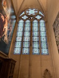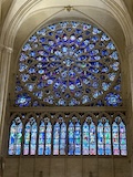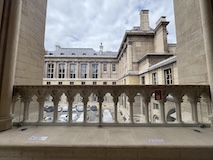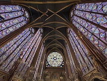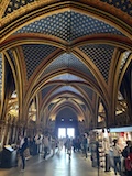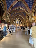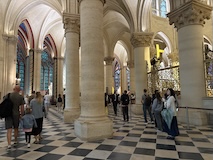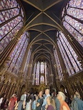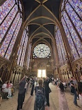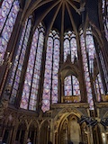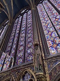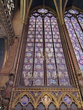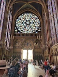 サントシャペルへ。ゴシック教会で2階建てになっているのが特徴だが、なんといっても上堂のステンドグラス。高さ15mの細長いステンドグラスがずらーっと並んでおり、バラ窓含めて一周ぐるっとステンドグラスで圧倒される。ステンドグラスには1134の聖書の場面が描かれているとのこと。