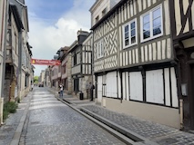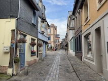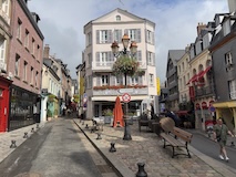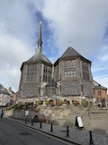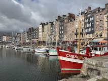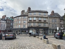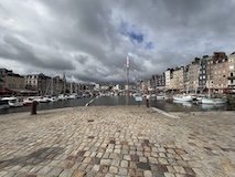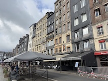 パリを出て2時間ちょいで、モンサンミッシェルへの中間点にあたるオンフルールに到着。とりあえず晴れてきて良かった。トイレ休憩かねてということでちょっとだけ寄るということなんやけど、情報がぎゅっとつまったパンフをみせていただき散策。東港そばの駐車場から散策スタート。港といっても東港はセーヌ川支流のモレル川広げて港にしたようなところなので、大きな人工池みたく見えてしまう。カラフルな住宅やレストランに広い歩道に、花壇にと街の入り口からとても綺麗な印象。街の中に入ると旧港が見えてくる。こちらはぎっしりボートが停泊していてその後ろにまたグレーブルーなカラフルなアパート、レストランが並ぶ。もうここだけですばらしい。木造だったりレンガなどのブロックの感じもあって石のパリとは違うところがノルマンディらしい。