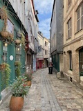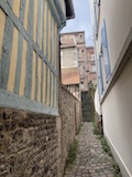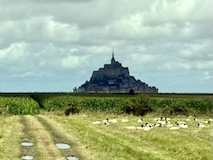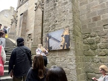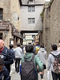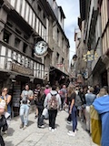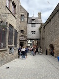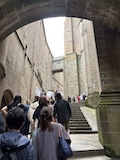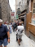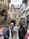 モン・サン・ミシェルもツアーでいろいろ紹介いただきながら回る。あのオムレツのお店ラ メール プラールや建築の話を聞く。木組みと漆喰や、レンガなどノルマンディらしいお店が並ぶ。けっこうお家が多いようで今は50人ほどが島内に住まわれているのだそう。島で一番狭い道や教会など紹介いただきながらメインストリートを登っていく。