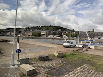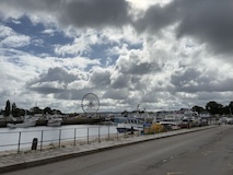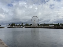 今回の一番の目的のモンサンミッシェルへ。パリから途中セーヌ川河口ちかくの港町オンフルールにちょっとだけ寄る日帰りのバスツアーを事前に申し込んでおいた。飛行機の次に予約しておいたのが正解で売り切れとのこと。集合は朝7時。とはいえ、これにあわせて宿近くに取ったので余裕。残念ながら今朝も雨降ってきた。