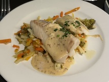駐車場あたりにホテルやレストラン、ショップが並ぶ。Restaurant La Salicorne(読めない)でモンサンミッシェル風オムレツの昼食。白身魚ムニエルなどなど、フランス料理。今回一番落ち着いていただけた。で、無料の周遊バスで、いざ。