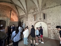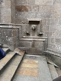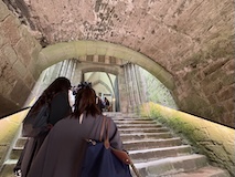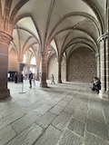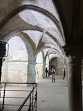 いよいよ修道院へ入る。ここで初めてチケットが必要になる。アーチだったり高い壁だったりでいろんな時代に増築されたのがわかる。この先随所に感じられるのが、修道院は山の上に建てられているという点で、削って平地を作られているわけじゃない。ちょいちょい岩肌が見えたり、平らにするために柱や壁が建てられている。