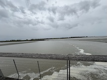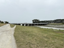 時間ないといっても、やっぱりやっぱり潮が引いた砂地から眺めたい。と、循環バス待ちの列が大渋滞。何台見送らないといけないかわからないので、歩いて戻る。橋を渡りながら、ちょいちょい後ろ振り返りながら。もっと見てたかったな。お土産見る時間もなく帰りのバスに乗り込む。