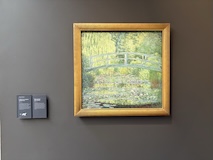 パリの西側に移動し、ブローニュの森近くのマルモッタンモネ美術館へ。収集家のポール・マルモッタンのコレクションが展示されている。なんといっても印象派の始まり印象日の出を見たい。邸宅に改造された建屋ということもあり、上階は19世紀の建屋という印象。しかもこの日はブーダンの特別展。モネなどに屋外で絵を描くことを教えた印象派の先生的な人の展示をマルモッタンモネ美術館で見られるのは感動的。幅広い作品が見られて満足。そして地下にはモネを中心とした展示。ルーアン大聖堂に睡蓮にひなげしにはもちろんやけど、やっぱり印象日の出。名古屋で見て以来かな。座ってじっくり見られた。家でも飾っているけど、やっぱいいなぁ。他に刀剣などの展示もあり、意外と幅広く楽しめた、ものすごく満足。で、中庭に出て軽く食事をいただいていると、一気に晴れてきた。