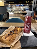 クロワッサン買って乗り込むぞ、と思っていたのに、結構売り切れていて、日本にもあるやんと思いつつ安定のPaulでパンオショコラなど買って