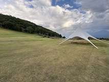 で、日帰り温泉の花ゆうみへ。グランピング場もあり広い敷地にあった広い露天がいい。単純温泉でやさしいお湯。