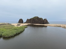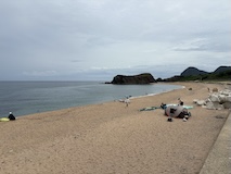 小さい頃何度か夏に泊まりに行った間人のはしうど荘へ。まだそのまま残ってた。こういうのはうれしい。お風呂だけでもと思ったが時間が合わなかったのかやってなかった。海水浴場にも出てみる。天気悪いってのもあるがガラガラ。昔はぎゅうぎゅうやったのになぁ。立岩経由で川を渡ったところがあたらしくなっていて、キャンプ場に道の駅ができたいた。