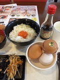 気になってた、道の駅丹後王国「食のみやこ」へ。西日本最大級とのことで。駐車場からトイレや観光案内が近くにあるような道の駅と違いテーマパーク。で、918(KUIYA)へ。5種類の新鮮卵かけ放題、ごはんおかわり放題の卵かけご飯屋さん。卵の食べ比べまでできるなんてすごい。
