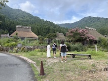 美山かやぶきの里へ。さすが人気スポット。閉館近いのにまだまだ人が多い。人が多いのでちょっと情緒がない気もするが、これだけまとめてあるのはいい景観。染めの博物館などしまっているところが多い中、カフェは空いてて少し茅葺きの中も見られて良かった。