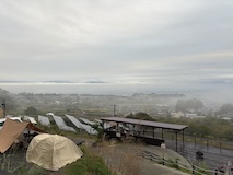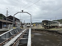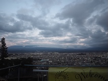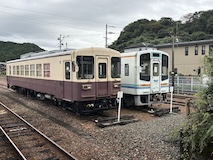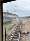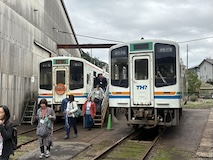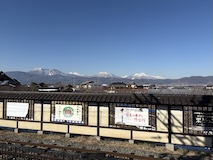 千曲川を渡ると一気に家が減り葡萄畑が広がる。小布施では上り側のゆけむり号もあったので2台んだのは見られた。