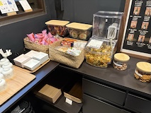 博物館のカフェは一見ポップな色調のお店なのだが、ここも坂茂らしいパイプの天井に椅子に机にと十分楽しめる。じゃがバターには人工衛星のキャラクターが乗っかってたり、深宇宙ということで真っ黒のカレーなど企画もので楽しい。
