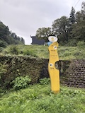 無人駅の芸術祭へ。今年は抜里地区だけのコンパクト開催。天気がいいので寺山を登るところからで、ざっと1時間のハイキング。お茶畑の上の見晴台がいい。山頂から南側へ降りるルートはあまり作品はないが、猫の看板の作品でちょいちょい癒される。