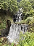 美濃の長良川発電所湯之洞谷水路橋へ。明治時代に作られた煉瓦とコンクリの5連アーチの水路橋で、登録有形文化財、近代化産業遺産になっている。立派などっしりした橋がかかっている。上に登ることもでき見てみると、ものすごい水量の水が流れている。この先は宿と寺院しかないくらいの道だが残していってほしい。さらにこの水路の先には長良川発電所があり、こちらも煉瓦造りの産業遺産なのだが現役で周辺に送電されているそう。