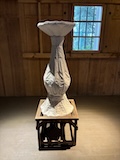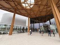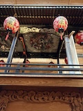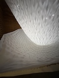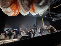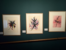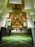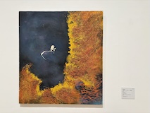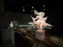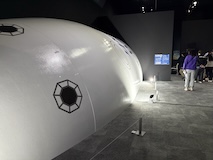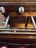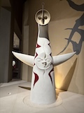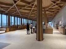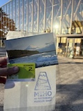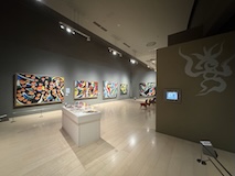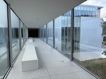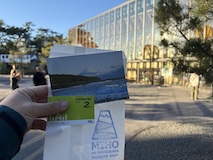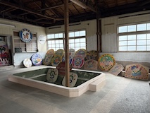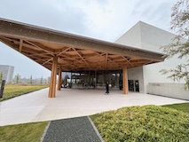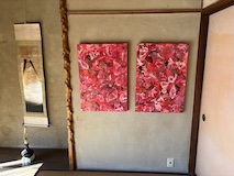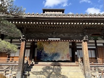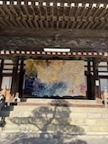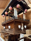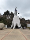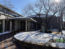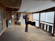 初アートはおぶせミュージアム中島千波館へ。今回は企画展も中島千波作品が並んでいて、特にここ数年一本桜旅をしていたので、それもあって桜の屏風を楽しめた。淡墨桜の屏風は墨を多用されていてモヤに隠れている感じとか、背景色が単色ではなく混ざり合った複雑な色でこの雰囲気が出ているみたいな使い方とか、ものすごくいい。作品の解説も解説ではなくて千波さんのコメントで、桜の印象などをかかれているというのも楽しい。また、デッサンもたくさん展示されていたのもいい。画用紙一枚ではなくて、たくさんの画用紙を並べて1枚のデッサンを作成されているのがわかる。屋外の屋台蔵には祭り屋台が5台。江戸後期から明治のものだそう。彫刻などとてもいい