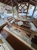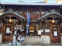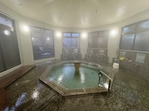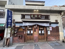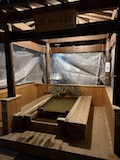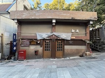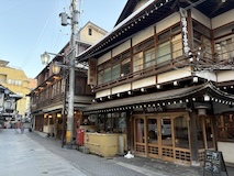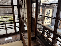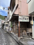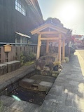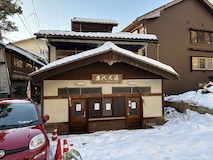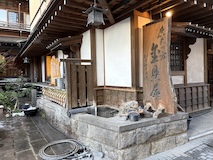 渋温泉に入ると外湯めぐりの浴場に射的場などのお店に民宿が川と崖に挟まれた狭い道沿いに並ぶ。まさに温泉街で、歩いている人も多い。渋温泉は35の旅館に外湯9箇所、40弱のの源泉があり、成分表的には少しづつ異なるが、全部高温。9個ある外湯は渋温泉に宿泊すれば9箇所巡れるのだけど、9番目の渋大湯だけは日帰り温泉として利用でき、周りの宿で入浴券を購入し、鍵を開けてもらうことで入れる。で、温泉もやけど、建物にちょっと入ってみたかったので目の前の金具屋さんで購入。入り口からなかなかに豪華。いやいやお見事。そのうち泊まってみたい。渋大湯は、よくある温泉地の共同浴場と同じで湯船のみの浴場と湯気を利用した蒸し風呂。木製の壁で風情あり、これをみると温泉街って感じがある。そして屋上には足湯もある。ナトリウム・カルシウム - 硫酸塩・塩化物温泉。無臭、茶褐色。湯船に仕切りを入れてあり、注ぎ口はいわゆる熱湯、反対側はぬる湯的になっているがいやいや熱い。ので狭いながら回転がいい。
