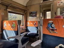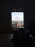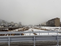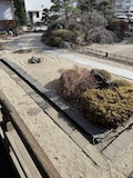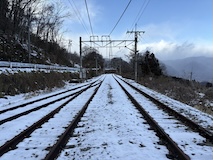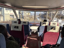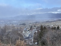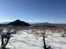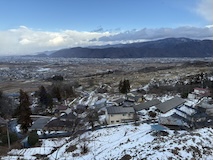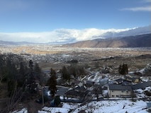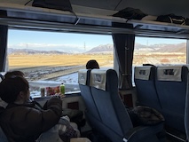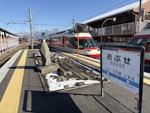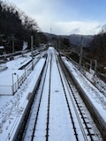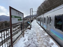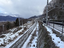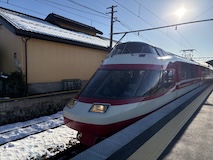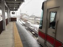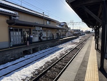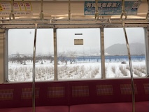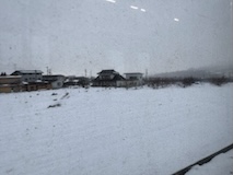 特急券付きの長野電鉄2日間フリー券を買って、指定を取ったゆけむり号で小布施へ。先頭車なのでワイドビュー。意外と雪がない。