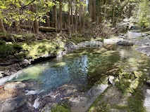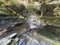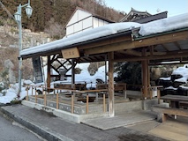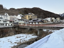 黒川橋を渡ると一方通行の狭い道に宿が並び出す。まず安代温泉(あんだいおんせん)。今やっている宿は少ない感じなのと宿泊者用の共同浴場が2件。この道のまま進むと渋温泉に入る。