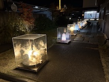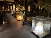 佐々木類の忘れじのあわい。2021年まで日本鉱泉という銭湯だったところが会場になっていて、瀬戸で採取した植物をガラスに閉じ込めライティングもあり亡霊のように宙に浮かせている。先頭ということで湯船や桶にもガラスで水を表現したかのようにはめてあるのも幻想的。瀬戸市新世紀工芸館やかつて旅館だった松千代館などにも展示があり散策。