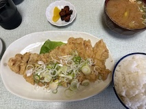 素泊まりなので夕食なく、渋温泉にある海鮮和食金新さんへ。信州紅鱒の信州味噌焼きの定食で満足。