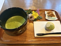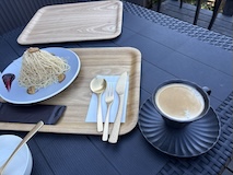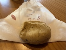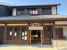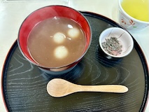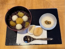 北斎館向かいにある、さきほどと同じ桜井甘精堂さんの北斎亭で栗ぜんざいをいただく。栗もぜんざいも甘くて美味しいしあったまる。