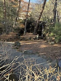 渋温泉北側の高台の上にも道があるので歩いてみる。ほぼ住宅街という感じだが、2ヶ所ほど共同浴場があった。鍵かかっていて近所の方が管理されているとのこと。いつでも入れるのは良いが管理も大変かもな。