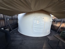 宿に戻り、また温泉に。穂波温泉の大湯近くにありかけ流しながら、湯船が広い。まずは大浴場に入り(熱い)、予約していた貸切の湯へ。貸切の湯は離れにあり雰囲気がいい。で、貸切と言えば大抵狭いのだけど、ここはとにかく広い。こちらも熱いのだけど大きな窓があるのでこれをあければ半露天的になるので気持ちよく長く入れた。優しいお湯で、気持ち良い、これを貸切で入れるのはほんと贅沢。いい温泉始めになった。