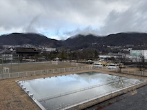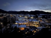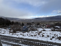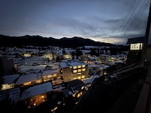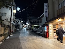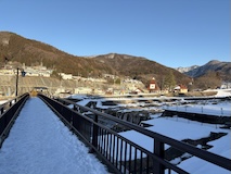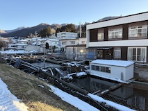 また、ゆけむり号で湯田中へ。道には雪はないが畑はもう真っ白。湯田中温泉は周辺の9ないし10の温泉をあわせての総称。あわせて100軒くらいの宿があるのに全然予約取れない人気スポット。降りた感じ欧米系の方が多い。今回泊まるのは湯田中駅から坂を降りて橋を渡って対岸にある穂波温泉のつるやさん。ちょっと古いがめっちゃ安いコスパの宿。なにより掛け流しのお風呂がいいとのこと。