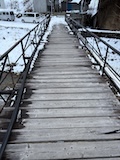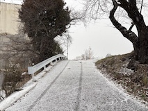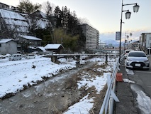 渋温泉まで夜間瀬川沿いを徒歩で向かう。ちょいちょい凍ってて滑る。