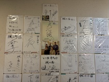 湯田中温泉駅に戻り、駅にある湯田中温泉の楓の湯へ。サインが並ぶ中真ん中に久石譲さん。すばらしい。ナトリウム-塩化物・硫酸塩温泉。駅前なのと500円とリーズナブルなのだけど、ちょっと狭いのが難。でも、時間待ちの間に入れていいかも。