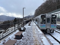 姨捨の車窓も楽しめた。雪があるとあまり棚田感はないが善光寺平は見渡せた。長野駅、大庇と列柱がいい。